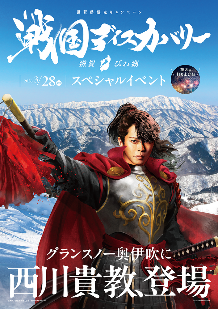 「戦国ディスカバリー滋賀・びわ湖 奥伊吹冬の陣」(滋賀) カレンダー 2026/03/28(土) 10:00 - 18:30 グランスノー奥伊吹 地図を表示 〈タボくんステージ時間〉11:45〜/14:55〜〈グリーティング&抽選会〉16:50〜 URLをコピーする 報告する